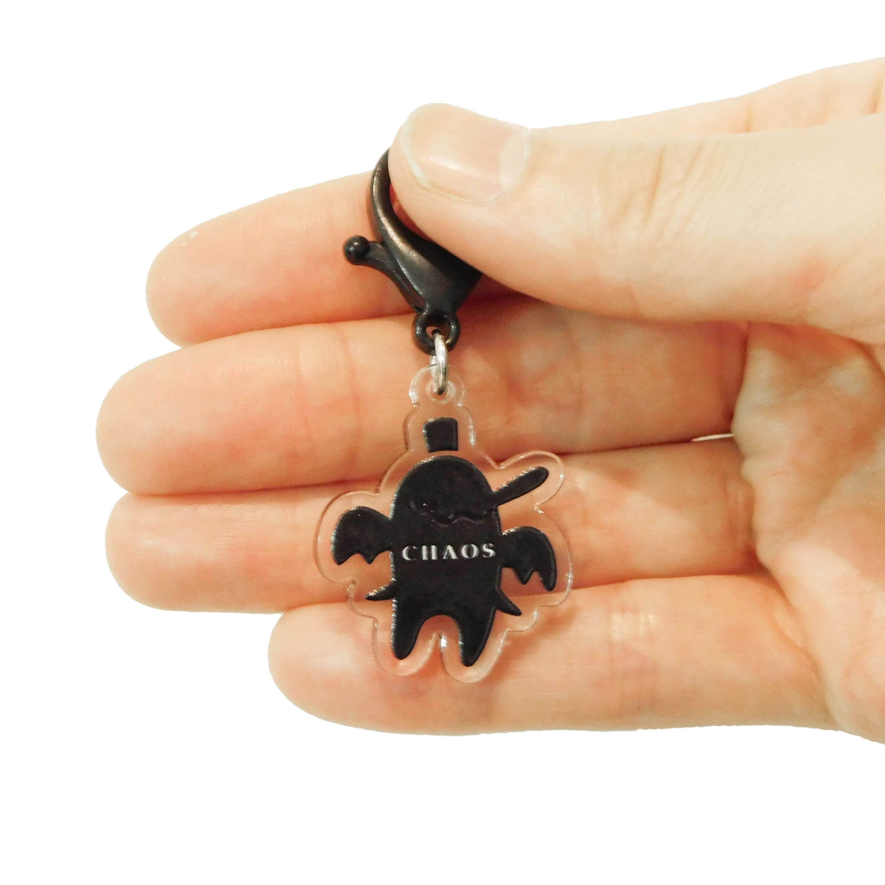 An acrylic keychain that embodies chaos as a yokai.
