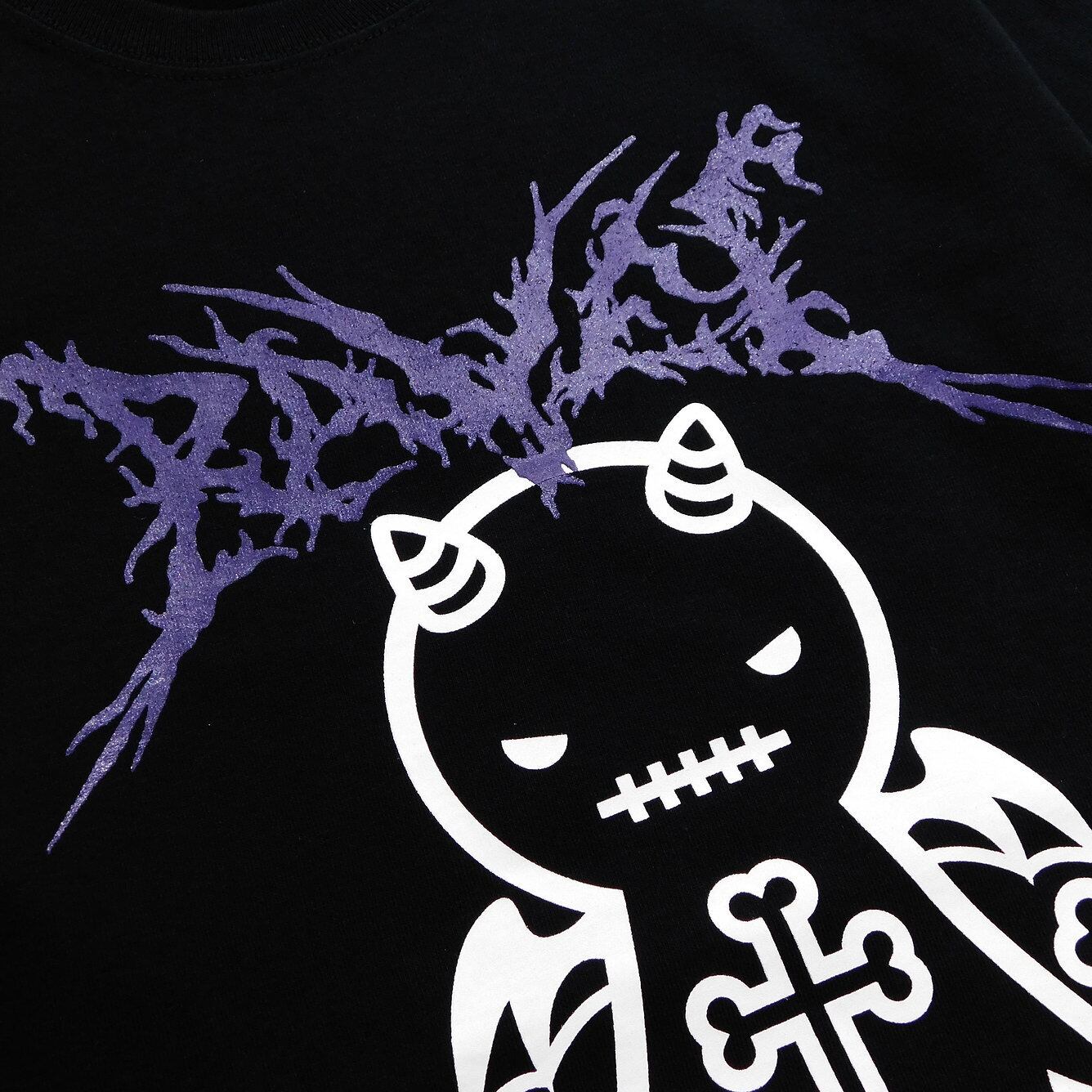 The back print features a cross with a bone motif.